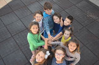 Depois dos alunos do 4º ano apadrinharem os "caloiros" do 1º ano, houve confetis.