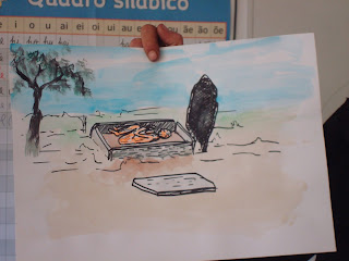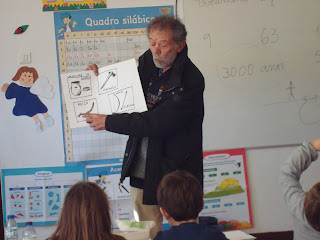 Os alunos estavam a trabalhar na sala de aula normalmente e de repente ouviram um barulho muito estranho que parecia um  camião a entrar na escola.