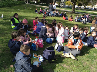 Depois do teatro, almoçámos nos jardins de Belém. Eu fiquei triste com o meu almoço porque a minha avó não me mandou batatas fritas e eu só comi panados.