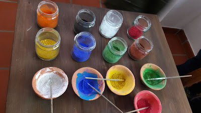 Mostrou-nos como eram as tintas que serviam para colorir os bonecos de Estremoz...